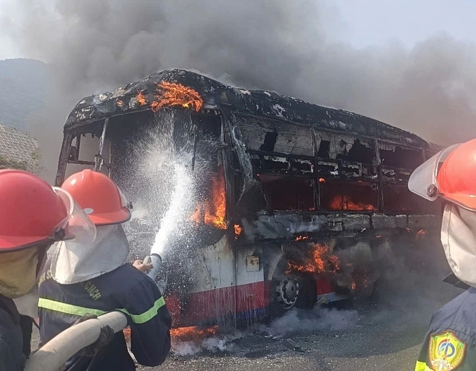 Vụ cháy xe khách nghiêm trọng trên Quốc lộ 1