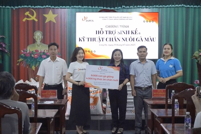 Công ty TNHH Japfa Comfeed Việt Nam vừa tiếp tục khẳng định cam kết phát triển bền vững của mình thông qua chương trình “Đồng lòng vì cộng đồng”. Vào ngày 29/7, công ty đã phối hợp với Ủy ban Mặt trận Tổ quốc Việt Nam xã Long Hà, tỉnh Đồng Nai, tổ chức lễ trao tặng gà giống và thức ăn chăn nuôi cho 80 hộ nông dân có hoàn cảnh khó khăn trên địa bàn.
