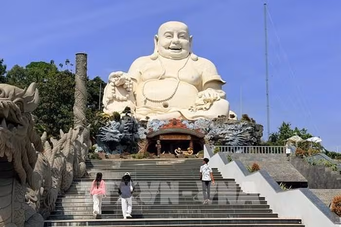 Tượng Phật Di Lặc 33,6m trên đỉnh Núi Cấm đang là điểm đến thu hút hàng chục nghìn lượt du khách và phật tử mỗi năm. Được khởi công năm 2004, hoàn thành vào tháng 12/2005, bức tượng cao 33,6 mét, nặng gần 1.700 tấn, tọa lạc trên độ cao hơn 500 mét so với mực nước biển, là biểu tượng tâm linh và kiến trúc độc đáo của tỉnh An Giang.